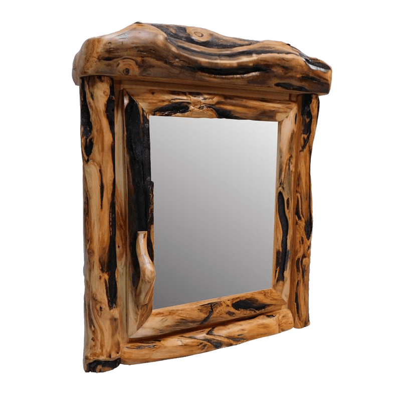 Crafted from solid aspen wood, our Aspen Log Single Door Medicine Cabinet highlights the natural beauty of red, grey, and brown wood tones. Thoughtfully designed to conceal hardware, the cabinet allows the raw, rustic charm of the wood to remain the focal point. Several hand-sprayed coats of varnish provide a rich, smooth, and vibrant finish, enhancing both durability and appearance.